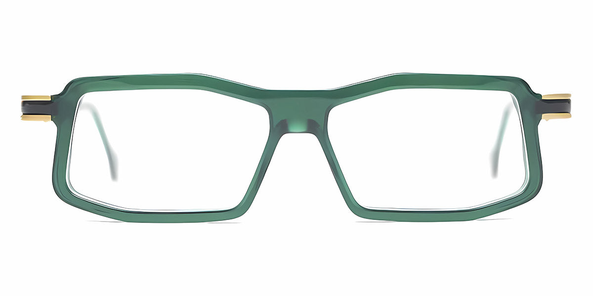 Green Transparent/Gold (R66) Eyeglasses (PYRAM R66 55) by Henau™. Size: 55-13-150, Shape: Rectangle, Material: Acetate and Titanium.