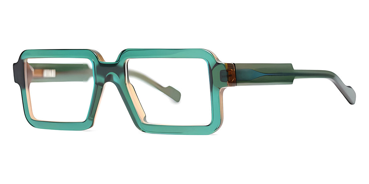 Transparent Green/Transparent Brown (0H66) Eyeglasses (QUAD 0H66 50) by Henau™. Size: 50-20-145, Shape: Rectangle, Material: Acetate.