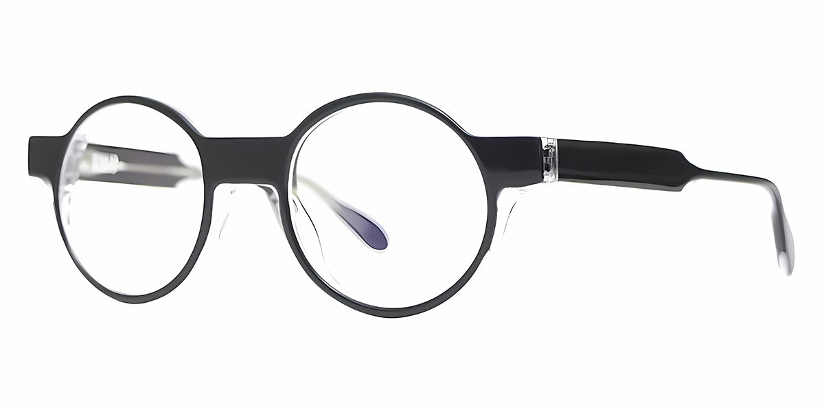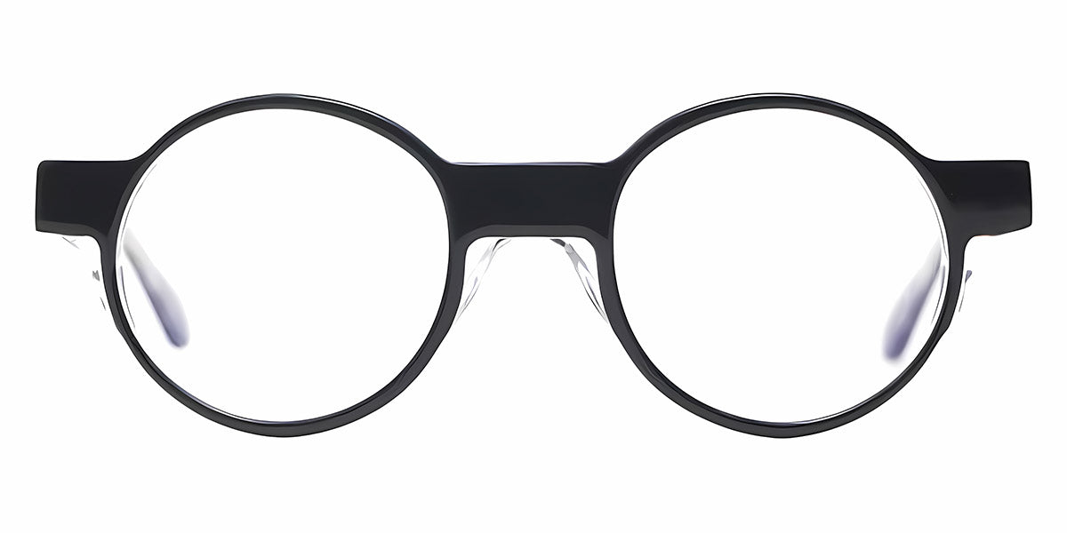 Black/Crystal (0H02) Eyeglasses (RONDO 0H02 45) by Henau™. Size: 45-21-135, Shape: Round, Material: Acetate.