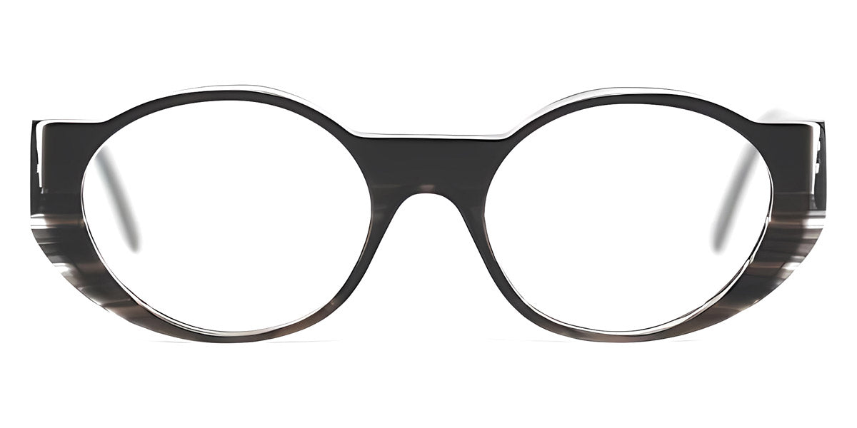 Black/White/Gray Striped Transparent (V45) Eyeglasses (SARRONO V45 52) by Henau™. Size: 52-19-145, Shape: Oval, Material: Acetate.