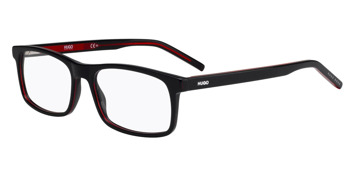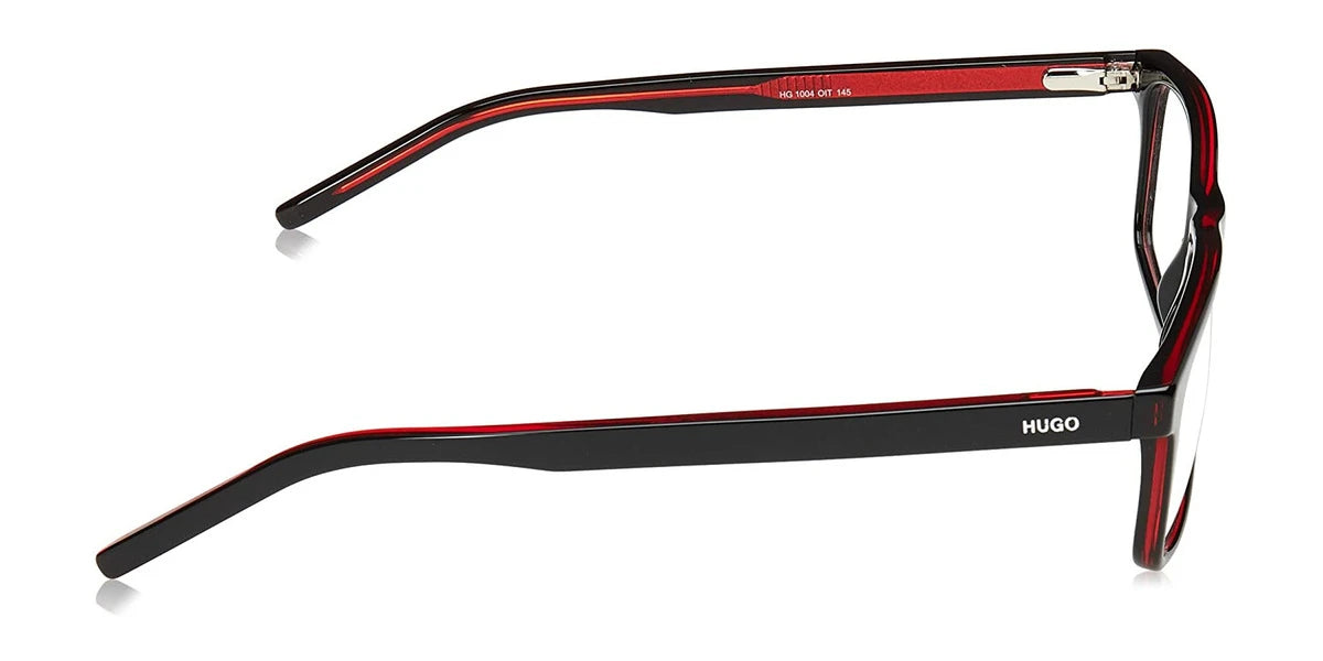 Black Red (0OIT) Eyeglasses (HG 1004 0OIT 54) by Hugo™. Size: 54-17-145, Shape: Rectangle, Material: Acetate.