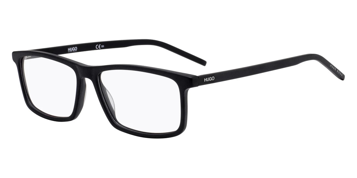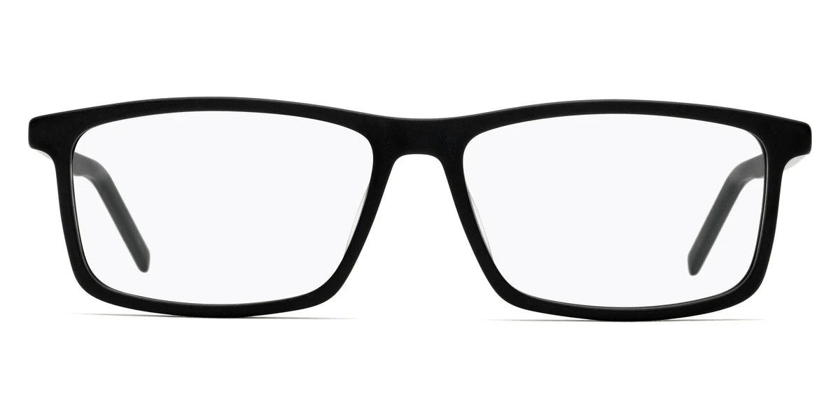 Matte Black (0003) Eyeglasses (HG 1025 0003 55) by Hugo™. Size: 55-15-145, Shape: Square, Material: Plastic.