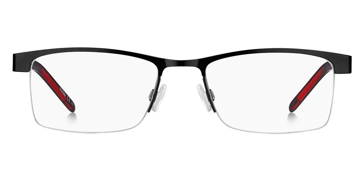 Matte Black (0003) Eyeglasses (HG 1199 0003 53) by Hugo™. Size: 53-19-145, Shape: Rectangle, Material: Acetate and Stainless Steel.
