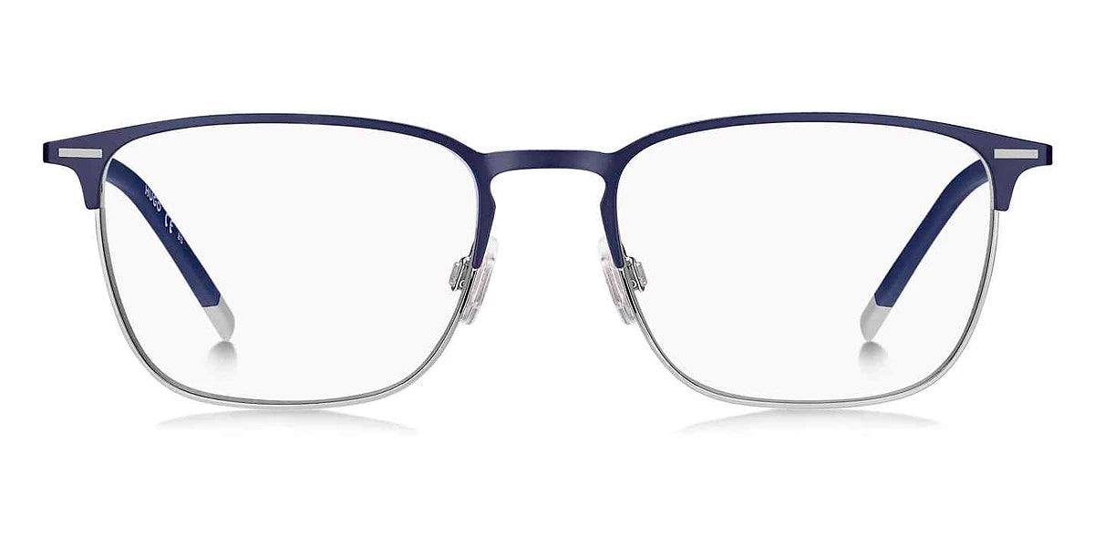 Blue Silver (0B88) Eyeglasses (HG 1235 0B88 53) by Hugo™. Size: 53-18-145, Shape: Rectangle, Material: Stainless Steel and Metal Regular.