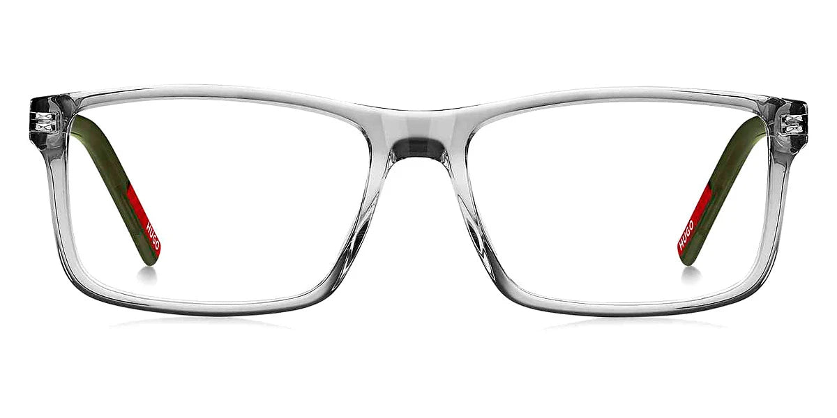Gray Green (03U5) Eyeglasses (HG 1262 03U5 55) by Hugo™. Size: 55-16-145, Shape: Rectangle, Material: Eco Acetate and Genuine Horn.