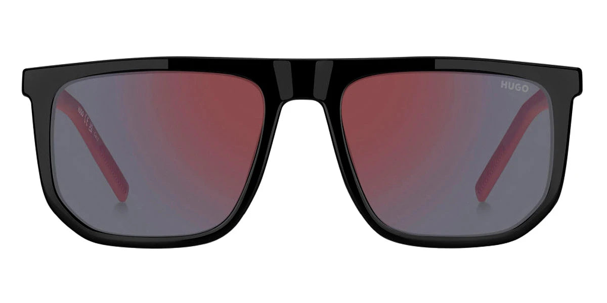 Black (0807AO) Sunglasses with Red Mirrored lenses (HG 1336/G/S 0807AO 56) by Hugo™. Size: 56-19-145, Shape: Rectangle, Material: Eco Cellulose P.Inj and Eco Rubber.