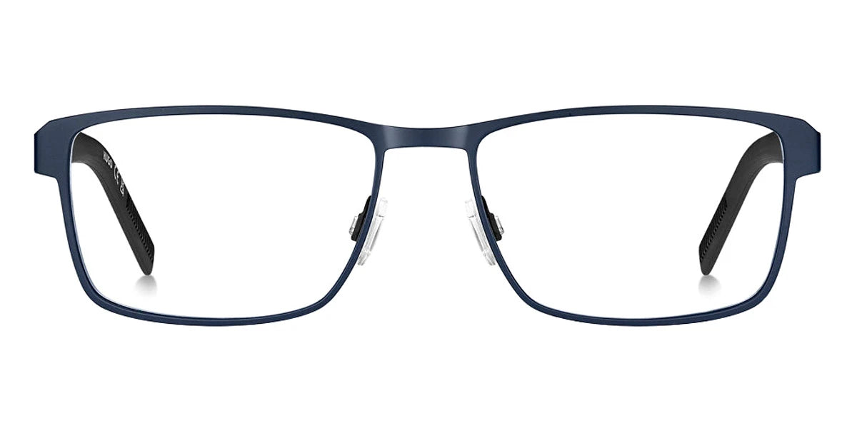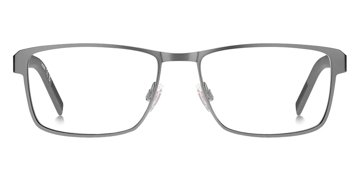 Matte Black (0003) Eyeglasses (HG 1343 0003 54) by Hugo™. Size: 54-16-145, Shape: Rectangle, Material: Stainless Steel and Eco Rubber.