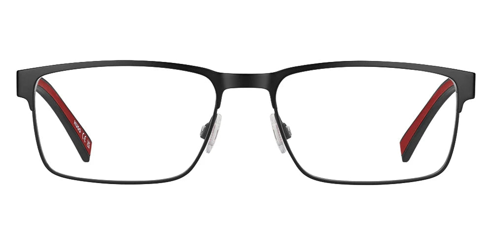 Matte Black (0003) Eyeglasses (HG 1373 0003 57) by Hugo™. Size: 57-17-145, Shape: Rectangle, Material: Eco Stainless Steel and Eco Rubber.