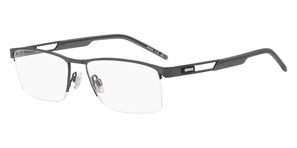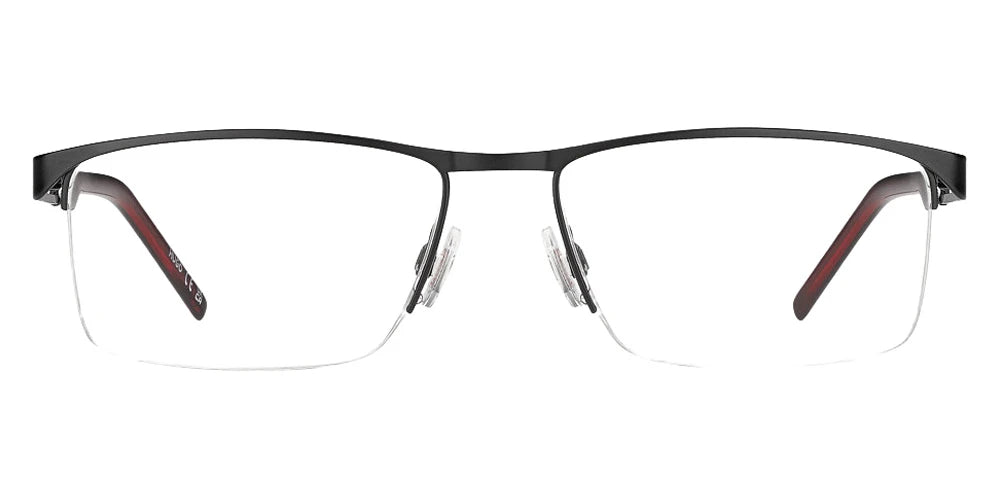 Matte Black (0003) Eyeglasses (HG 1389 0003 56) by Hugo™. Size: 56-17-145, Shape: Rectangle, Material: Eco Stainless Steel.