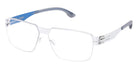 Silvan Eyeglasses by ic! berlin. The square shape design feature a full rim metal frame. This model is available in four different color combinations and sizes. Minimalist design, amazing lightness and flexibility; no screws, no welds and perfection of style - these are the keywords of the ic! berlin products. The frame is connected to the earhook with a special patented mount due to which the eyeglasses are incredibly reliable and durable. Thanks to the unique ic! berlin mechanism, the owner of eyeglasses can easily assemble and disassemble them without the help of a specialist. The eyewear collections of the trend-setting eyewear manufacturer are made of the finest materials, such as high-end steel, titanium and acetate. Despite their expensive price, ic! berlin eyeglasses are first of all a universal accessory which is perfect for everyday wearing.