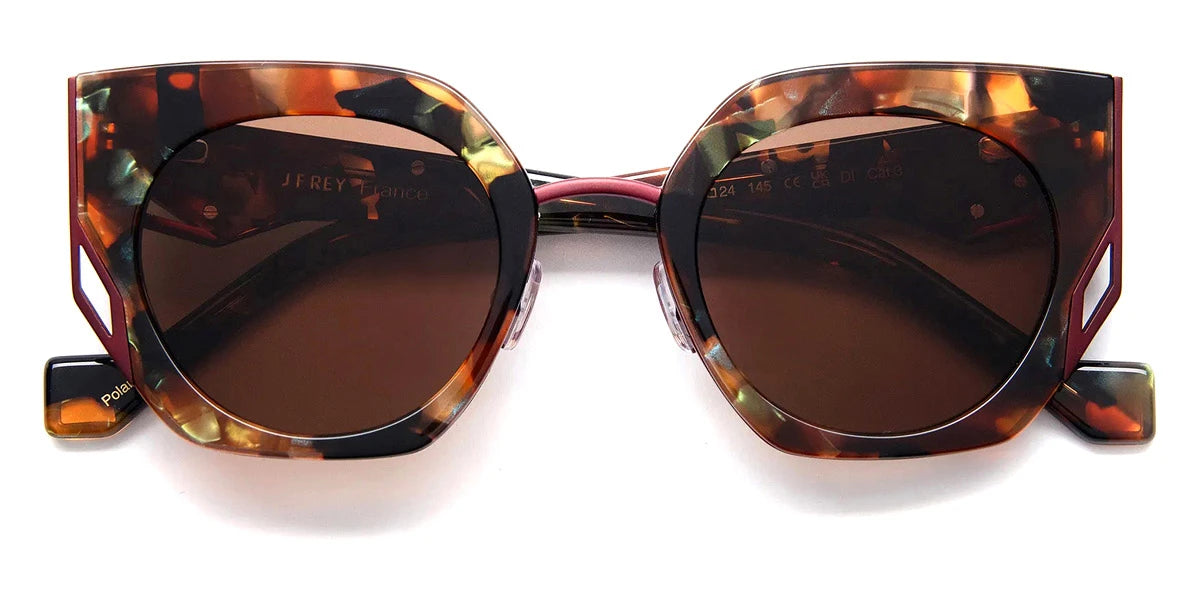 BRYNN Sunglasses by J.F. Rey™. The cat-eye shape design feature a full rim acetate frame. This model is available in four different color combinations and sizes. French brand J.F. Rey combines incongruous characteristics and looks flawless at the same time. The brand offers sunglasses that are at the same time conservative, daring and flashy, and completely unpretentious. Their appearance is very simple, but for the most comfortable wearing of frames of this brand, you must have a certain charisma and a strong inner core, because J.F. Rey is unique and completely unrepeatable. In the production of sunglasses, only time-tested materials are used. Steel and cellulose acetate are the highest quality materials that are presented for the production of spectacle frames. And designers of J.F. Rey models embody the image of a modern young person who appreciates timeless classics. The style of sunglasses is universal and does not lose its relevance for a long time. The brand is addressed to internally liberated people who choose glasses that they fall in love with at first sight, according to their character.