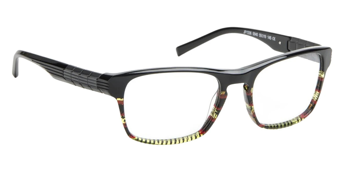 Black/Fabric Anise Green Orange (0040) Eyeglasses (JF1336 0040 55) by J.F. Rey™. Size: 55-19-145, Shape: Rectangle, Material: Acetate.
