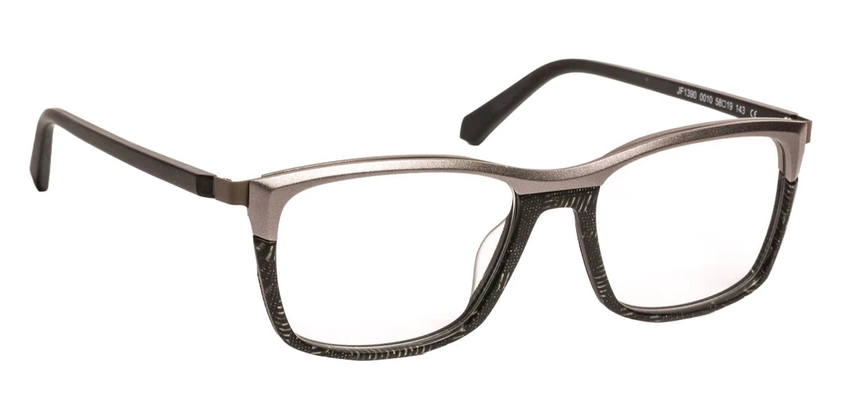 Aluminium Silver/Low Black/Metal Gunmetal (0010) Eyeglasses (JF1390 0010 58) by J.F. Rey™. Size: 58-19-143, Shape: Rectangle, Material: Acetate and Metal.