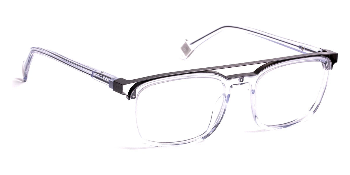Crystal/Antic Silver (1005) Eyeglasses (JF1485 1005 52) by J.F. Rey™. Size: 52-19-148, Shape: Square, Material: Acetate and Metal.