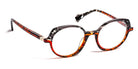 JF1508 Eyeglasses by J.F. Rey™. The cat-eye shape design feature a full rim acetate frame. This model is available in two different color combinations and sizes. Inspired by the textiles field, this acetate frame is made from materials reminiscent of fabrics. A thin line of laminated acetate emphasizes the face and temples. This plain edging brings brightness and visual richness to the model through the contrast created by the two-tone color. The design around the hinge and the flex system integrated into the temple give this product a refined aesthetic and optimal comfort.
