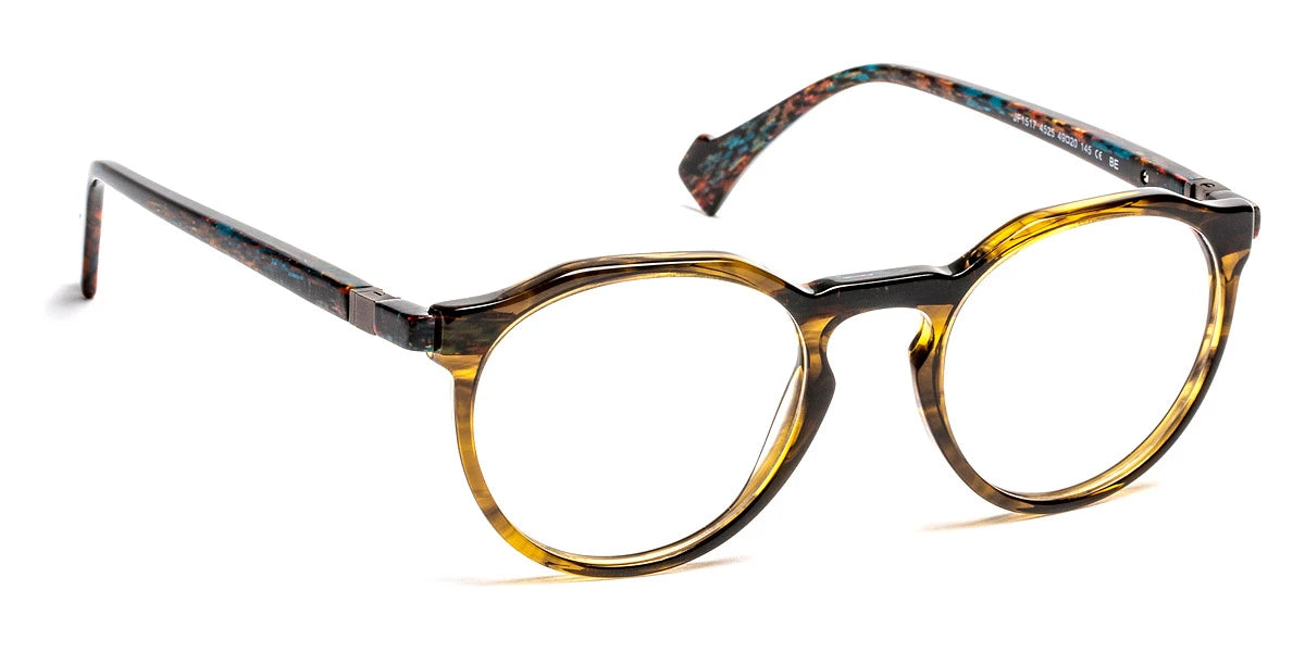 Stripes Brown/Green (9545) Eyeglasses (JF1517 9545 49) by J.F. Rey™. Size: 49-20-145, Shape: Wayfarer, Material: Acetate.