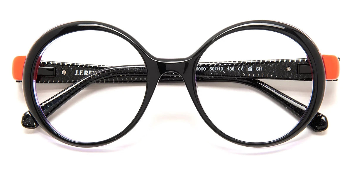 Black/Orange (0060) Eyeglasses (JF1547 0060 50) by J.F. Rey™. Size: 50-19-138, Shape: Oval, Material: Acetate.