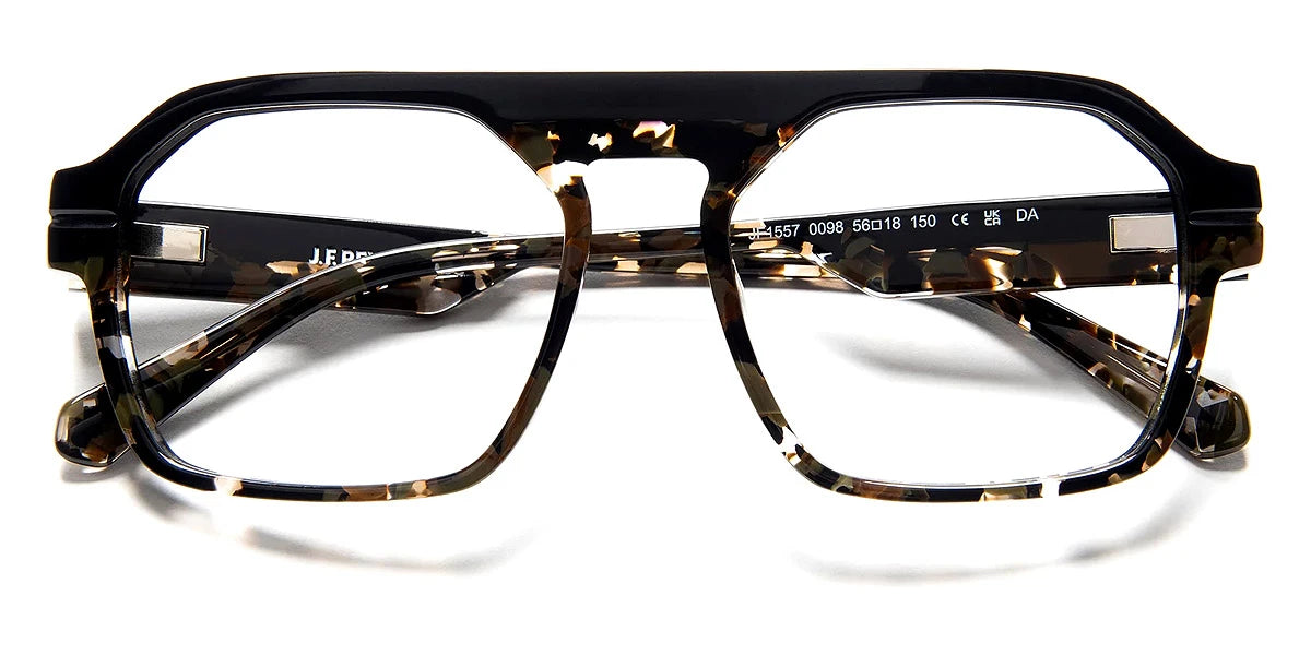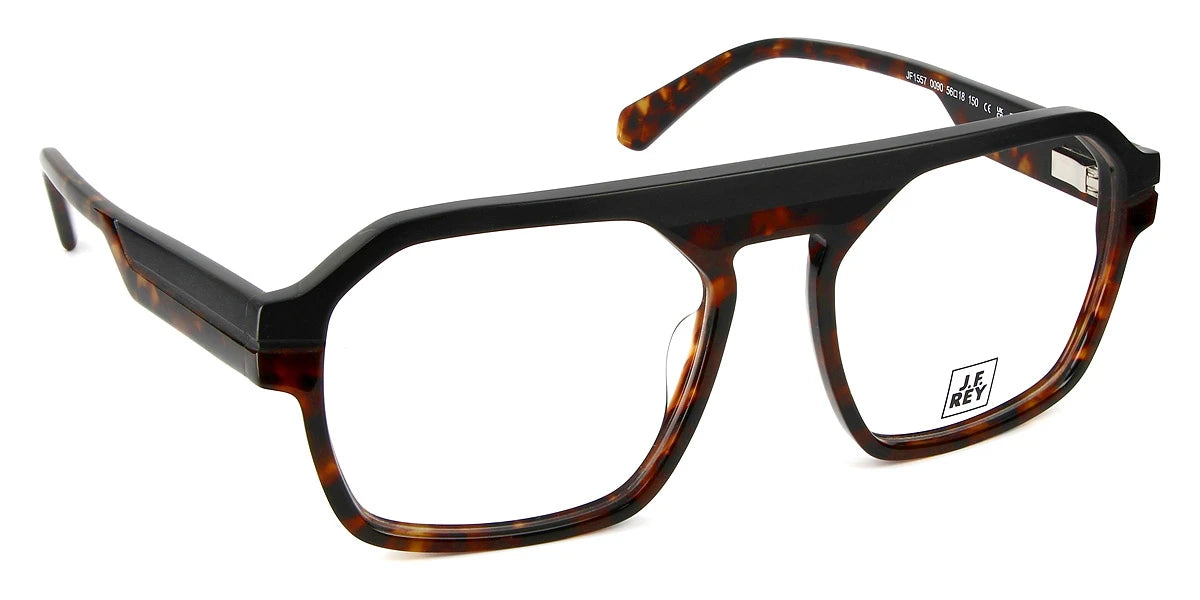 Matte Black/Demi (0090) Eyeglasses (JF1557 0090 56) by J.F. Rey™. Size: 56-18-150, Shape: Aviator, Material: Acetate.