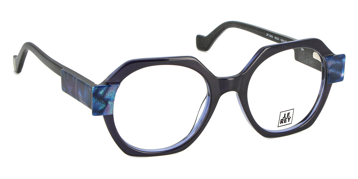 Black/Blue Smoky (0020) Eyeglasses (JF1563 0020 50) by J.F. Rey™. Size: 50-19-145, Shape: Geometric, Material: Acetate.