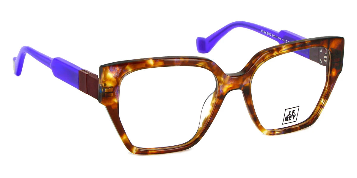 Blue/Plum (2870) Eyeglasses (JF1566 2870 52) by J.F. Rey™. Size: 52-17-145, Shape: Cat-Eye, Material: Acetate.