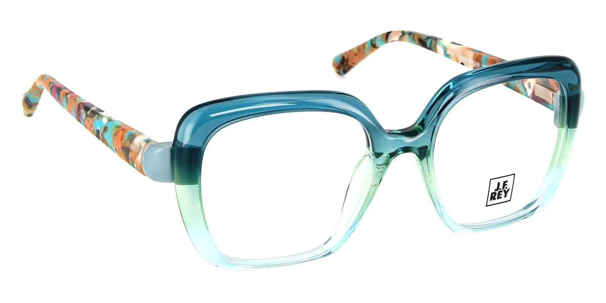 Blue Green Gradient (2225) Eyeglasses (JF1569 2225 50) by J.F. Rey™. Size: 50-18-138, Shape: Square, Material: Acetate.