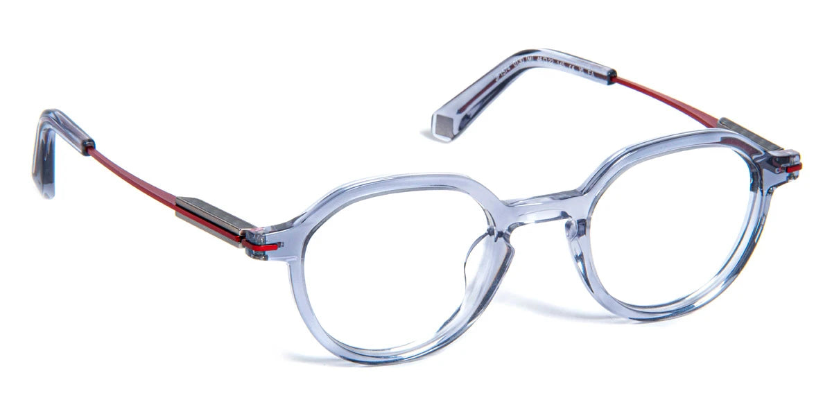 Gray/Red (0130) Eyeglasses (JF1574 0130 46) by J.F. Rey™. Size: 46-22-145, Shape: Round, Material: Acetate and Metal.