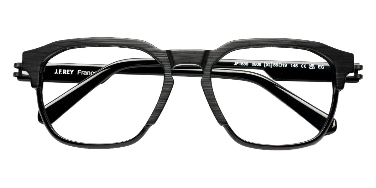 Black (0808) Eyeglasses (JF1586 0808 56) by J.F. Rey™. Size: 56-19-145, Shape: Square, Material: Acetate.