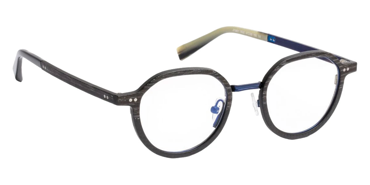 Fiber Glass Brown/Blue (9520) Eyeglasses (JF2901 9520 47) by J.F. Rey™. Size: 47-22-150, Shape: Wayfarer, Material: Carbon Fiber and Wood.