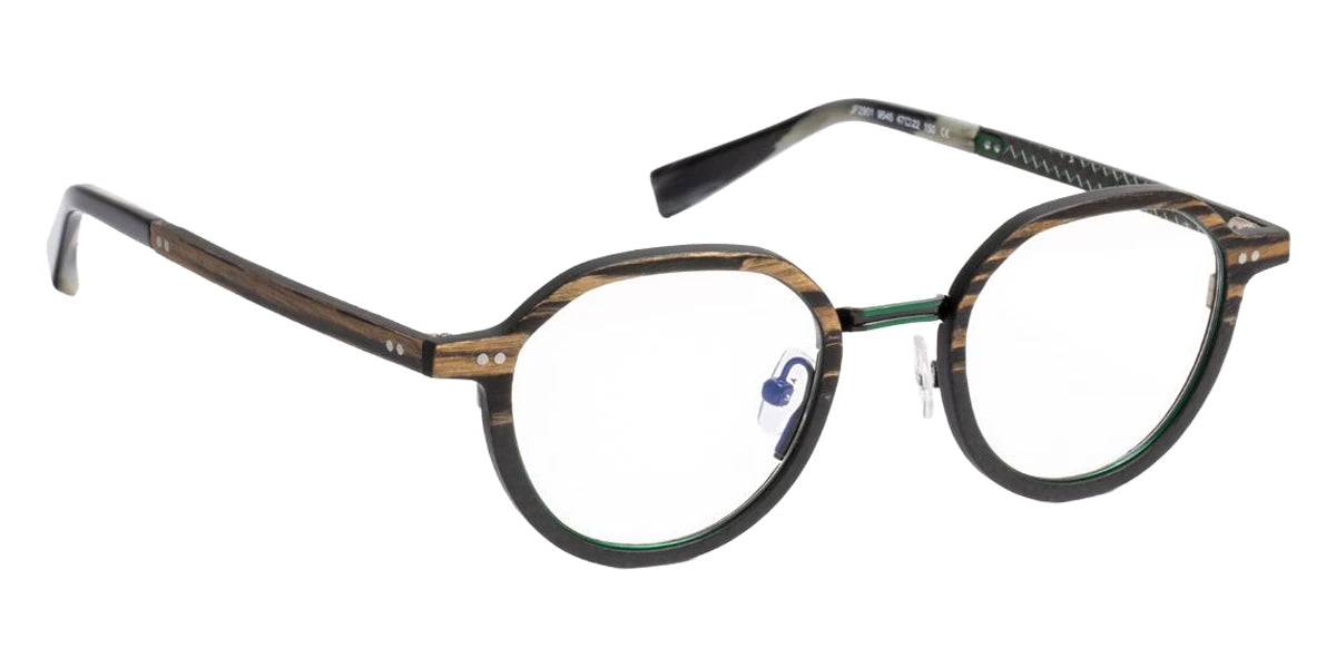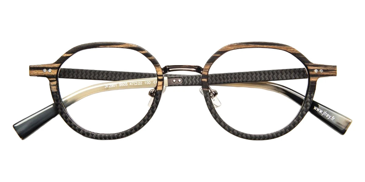 JF2901 Eyeglasses by J.F. Rey™. The wayfarer shape design feature a full rim carbon fiber and wood frame. This model is available in seven different color combinations and sizes. This frame is made from layers of carbon fibers and natural wood. As an ultra-resistant composite materials, carbon ensures a beautiful lightness, a great flexibility, and an incomparable solidity. Woody shades coexist with electric colors or the intense black of carbon.