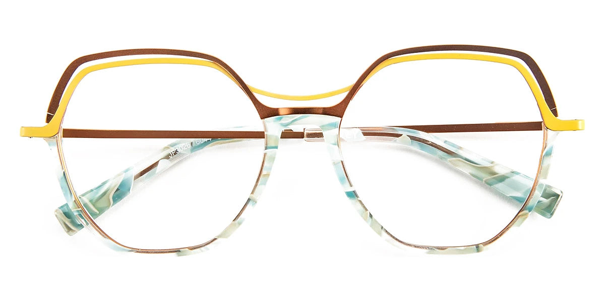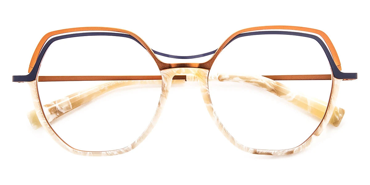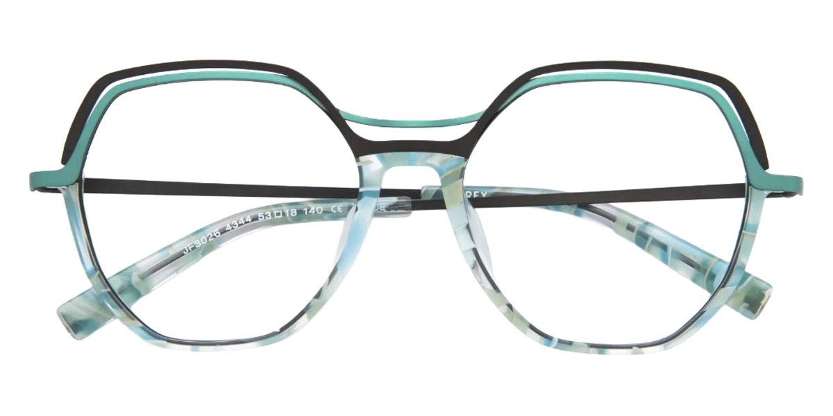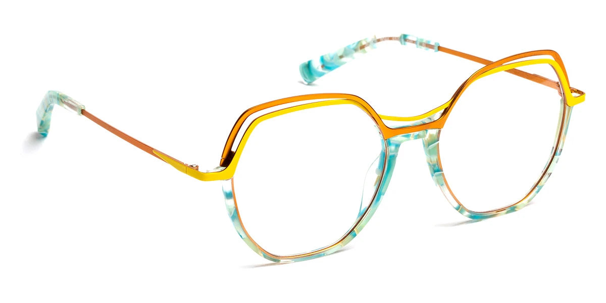 Green/Orange/Yellow (6044) Eyeglasses (JF3026 6044 53) by J.F. Rey™. Size: 53-18-140, Shape: Cat-Eye, Material: Acetate and Metal.