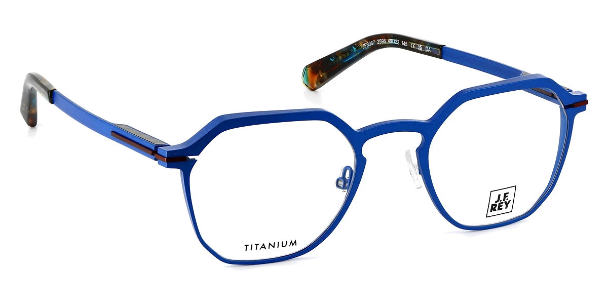 JF3067 Eyeglasses by J.F. Rey™. The wayfarer shape design feature a full rim titanium frame. This model is available in five different color combinations and sizes. French brand J.F. Rey combines incongruous characteristics and looks flawless at the same time. The brand offers eyeglasses that are at the same time conservative, daring and flashy, and completely unpretentious. Their appearance is very simple, but for the most comfortable wearing of frames of this brand, you must have a certain charisma and a strong inner core, because J.F. Rey is unique and completely unrepeatable. In the production of eyeglasses, only time-tested materials are used. Steel and cellulose acetate are the highest quality materials that are presented for the production of spectacle frames. And designers of J.F. Rey models embody the image of a modern young person who appreciates timeless classics. The style of eyeglasses is universal and does not lose its relevance for a long time. The brand is addressed to internally liberated people who choose glasses that they fall in love with at first sight, according to their character.