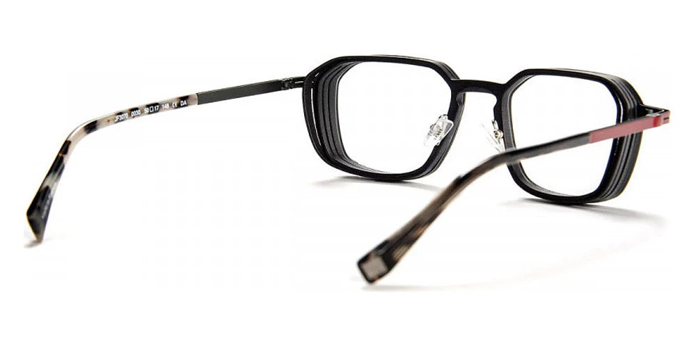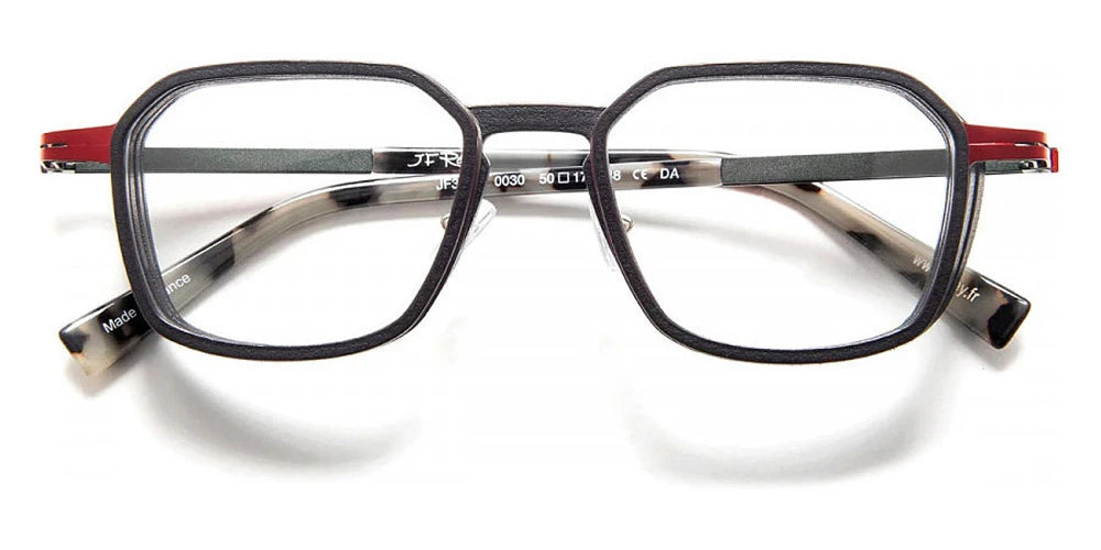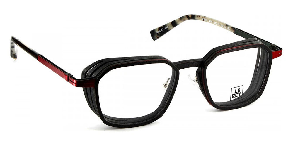 Black/Red (0030) Eyeglasses (JF3070 0030 50) by J.F. Rey™. Size: 50-19-148, Shape: Square, Material: Acetate and Metal.