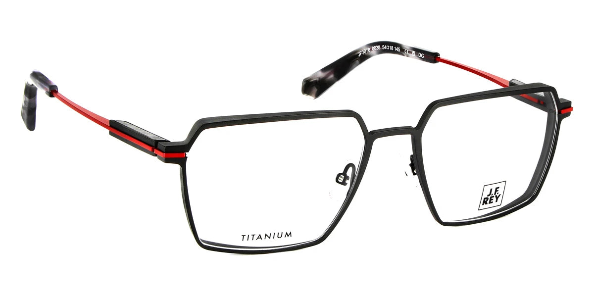 Black/Red (0038) Eyeglasses (JF3078 0038 54) by J.F. Rey™. Size: 54-18-145, Shape: Square, Material: Metal.
