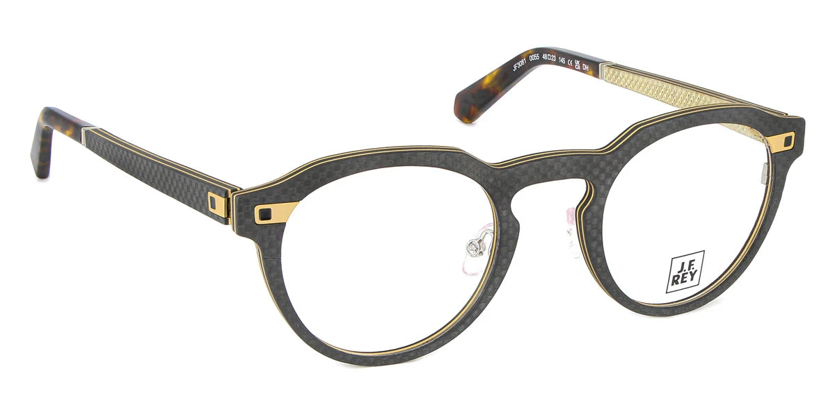 JF3081 Eyeglasses by J.F. Rey™. The wayfarer shape design feature a full rim carbon fiber and wood frame. This model is available in three different color combinations and sizes. French brand J.F. Rey combines incongruous characteristics and looks flawless at the same time. The brand offers eyeglasses that are at the same time conservative, daring and flashy, and completely unpretentious. Their appearance is very simple, but for the most comfortable wearing of frames of this brand, you must have a certain charisma and a strong inner core, because J.F. Rey is unique and completely unrepeatable. In the production of eyeglasses, only time-tested materials are used. Steel and cellulose acetate are the highest quality materials that are presented for the production of spectacle frames. And designers of J.F. Rey models embody the image of a modern young person who appreciates timeless classics. The style of eyeglasses is universal and does not lose its relevance for a long time. The brand is addressed to internally liberated people who choose glasses that they fall in love with at first sight, according to their character.