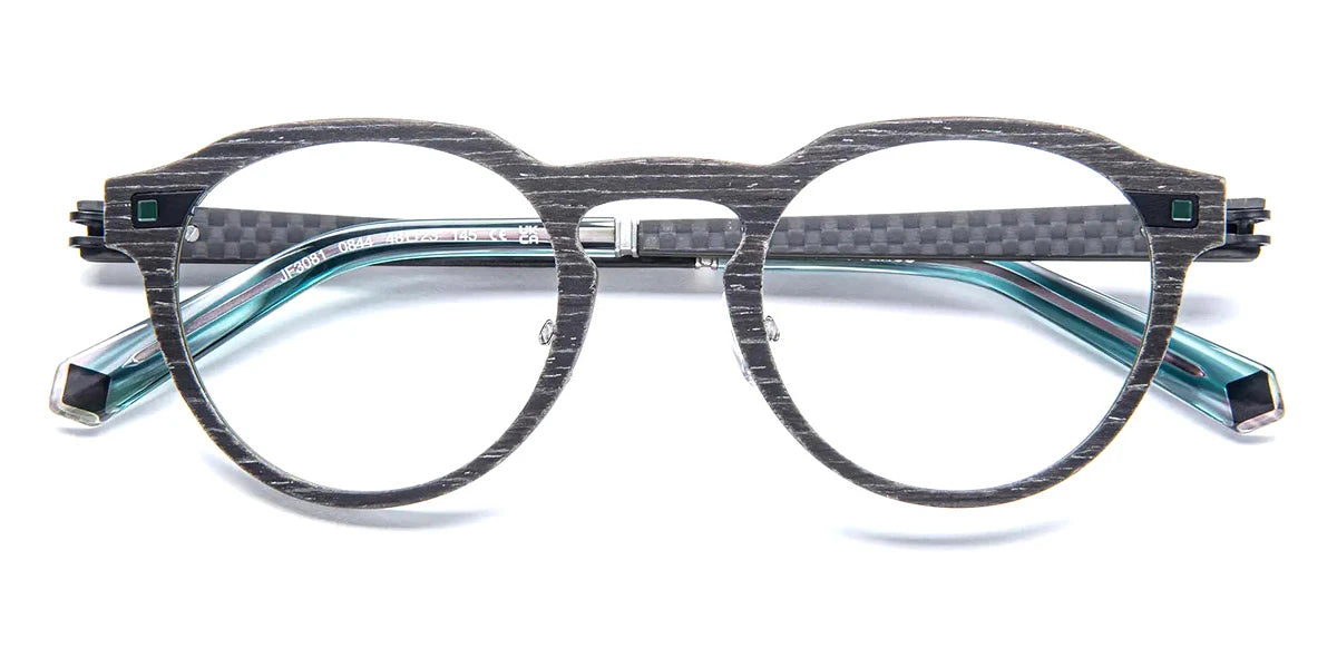 Carbon/Alu Green (0844) Eyeglasses (JF3081 0844 48) by J.F. Rey™. Size: 48-23-145, Shape: Wayfarer, Material: Carbon Fiber and Wood.