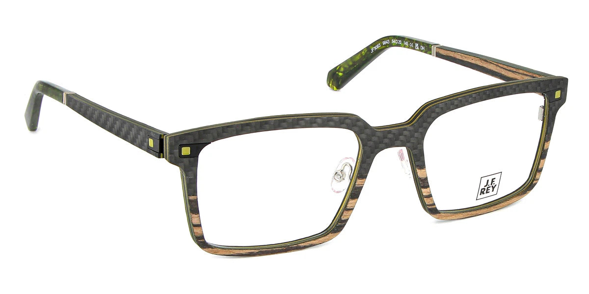 JF3083 Eyeglasses by J.F. Rey™. The rectangle shape design feature a full rim carbon fiber and wood frame. This model is available in three different color combinations and sizes. French brand J.F. Rey combines incongruous characteristics and looks flawless at the same time. The brand offers eyeglasses that are at the same time conservative, daring and flashy, and completely unpretentious. Their appearance is very simple, but for the most comfortable wearing of frames of this brand, you must have a certain charisma and a strong inner core, because J.F. Rey is unique and completely unrepeatable. In the production of eyeglasses, only time-tested materials are used. Steel and cellulose acetate are the highest quality materials that are presented for the production of spectacle frames. And designers of J.F. Rey models embody the image of a modern young person who appreciates timeless classics. The style of eyeglasses is universal and does not lose its relevance for a long time. The brand is addressed to internally liberated people who choose glasses that they fall in love with at first sight, according to their character.