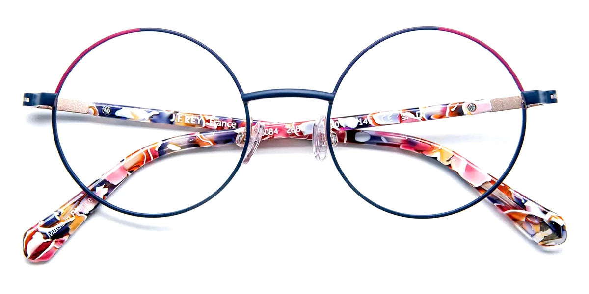 Blue/Pink (2885) Eyeglasses (JF3084 2885 49) by J.F. Rey™. Size: 49-20-145, Shape: Round, Material: Metal.