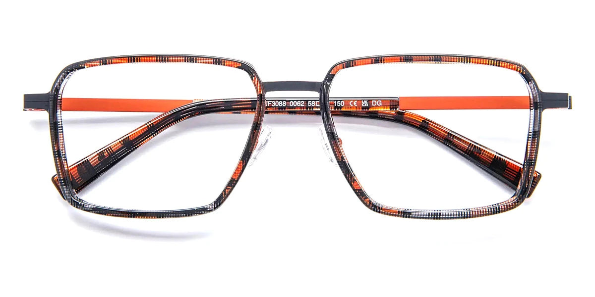 Brown/Blue (9825) Eyeglasses (JF3088 9825 58) by J.F. Rey™. Size: 58-18-150, Shape: Square, Material: Acetate and Metal.