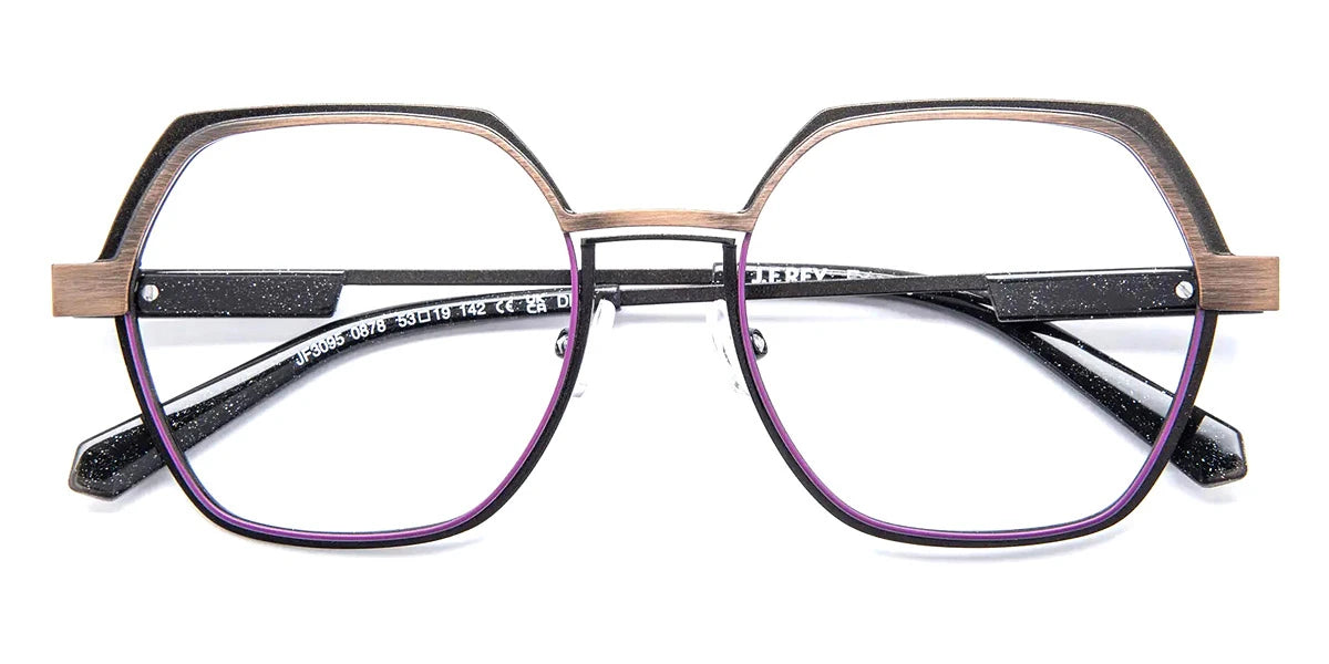 Black/Violet (0878) Eyeglasses (JF3095 0878 53) by J.F. Rey™. Size: 53-19-142, Shape: Square, Material: Metal.