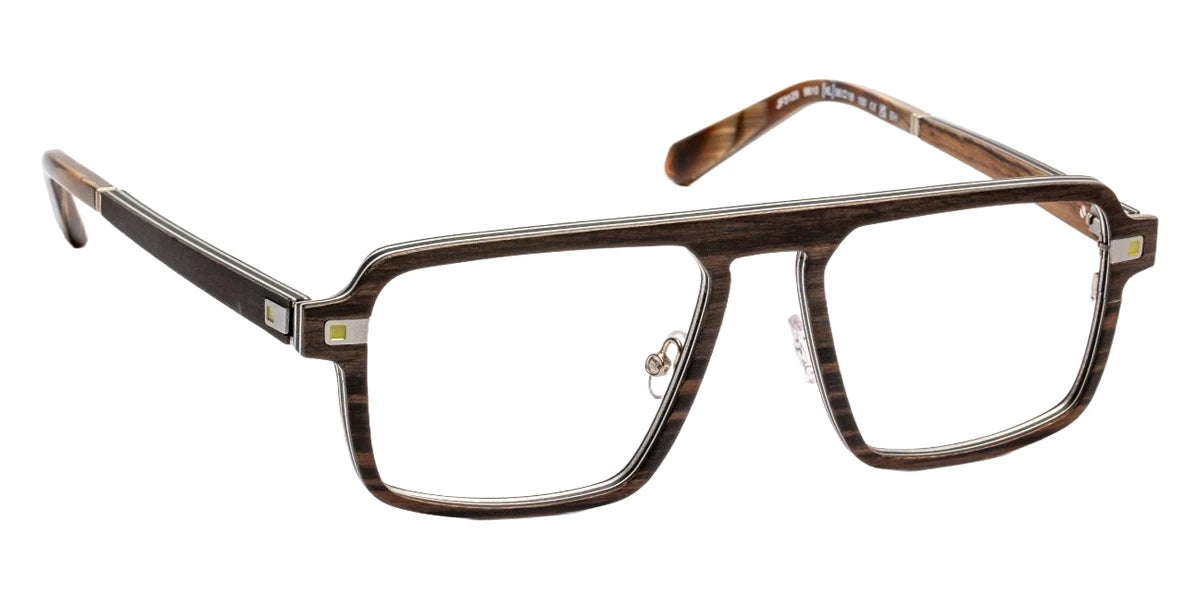 Wood Brown/Black/Aluminium (9810) Eyeglasses (JF3129 9810 56) by J.F. Rey™. Size: 56-18-150, Shape: Aviator, Material: Acetate.