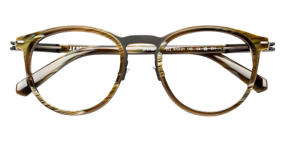 Horn/Matte Black/Matte Gunmetal (0895) Eyeglasses (JF3132 0895 51) by J.F. Rey™. Size: 51-21-145, Shape: Wayfarer, Material: Acetate.
