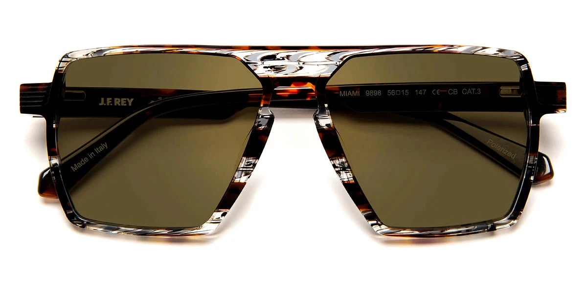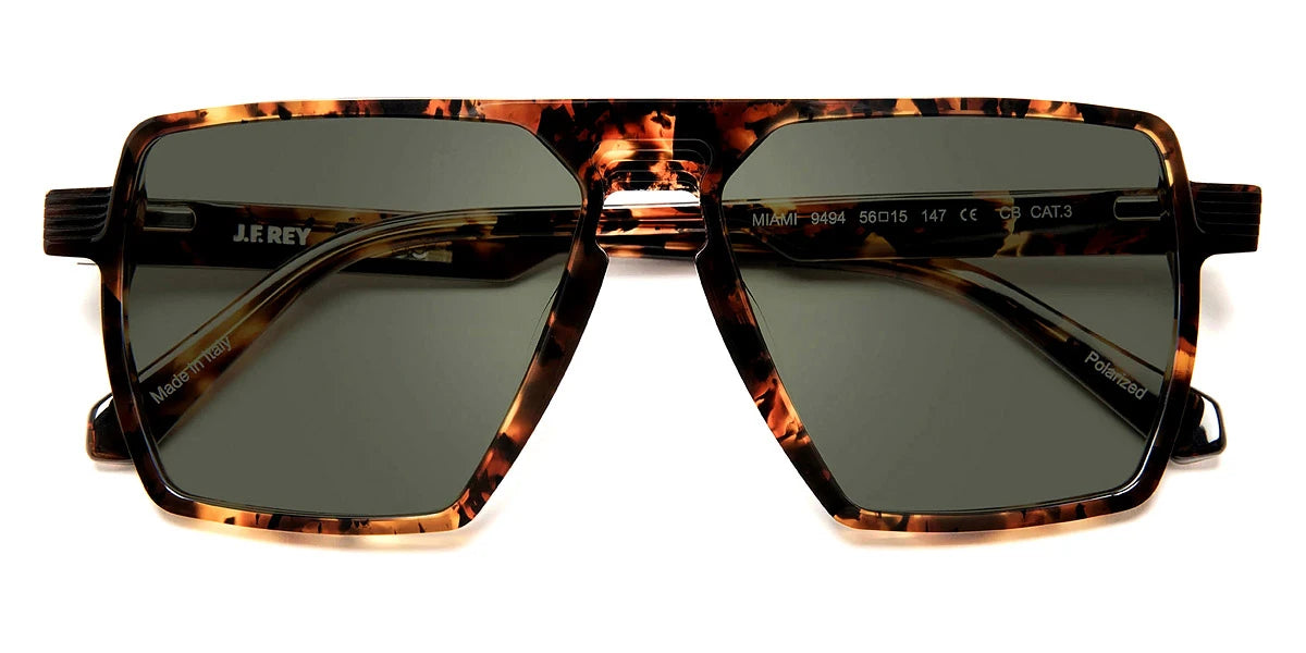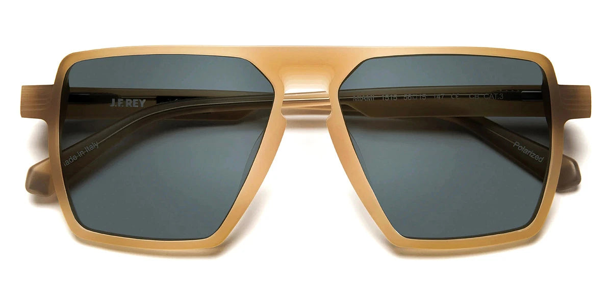 Miami Sunglasses by J.F. Rey™. The aviator shape design feature a full rim acetate frame. This model is available in five different color combinations and sizes. French brand J.F. Rey combines incongruous characteristics and looks flawless at the same time. The brand offers sunglasses that are at the same time conservative, daring and flashy, and completely unpretentious. Their appearance is very simple, but for the most comfortable wearing of frames of this brand, you must have a certain charisma and a strong inner core, because J.F. Rey is unique and completely unrepeatable. In the production of sunglasses, only time-tested materials are used. Steel and cellulose acetate are the highest quality materials that are presented for the production of spectacle frames. And designers of J.F. Rey models embody the image of a modern young person who appreciates timeless classics. The style of sunglasses is universal and does not lose its relevance for a long time. The brand is addressed to internally liberated people who choose glasses that they fall in love with at first sight, according to their character.