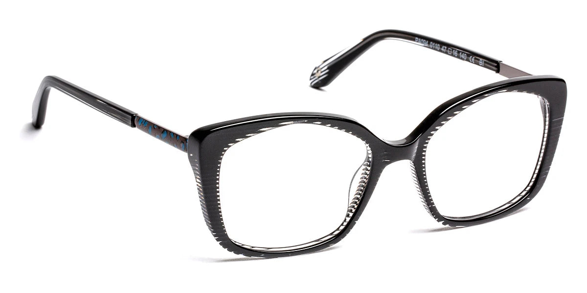 Stripe Black/Shiny Gunmetal (0110) Eyeglasses (PA094 0110 47) by J.F. Rey™. Size: 47-16-140, Shape: Square, Material: Acetate and Metal.