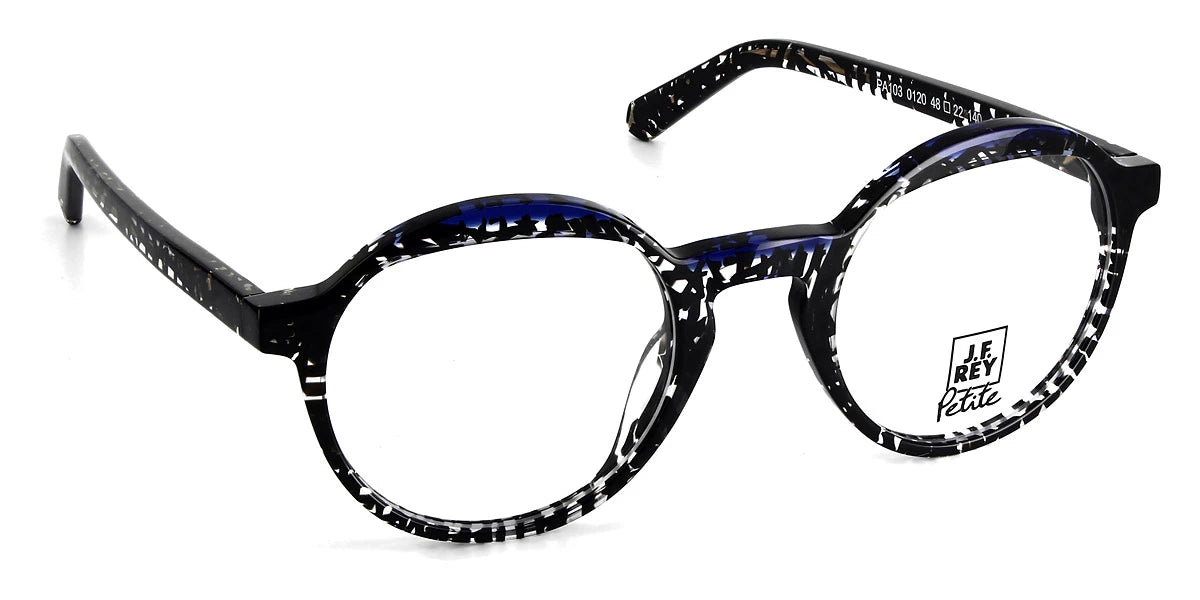 Nice Black/Blue (0120) Eyeglasses (PA103 0120 48) by J.F. Rey™. Size: 48-22-140, Shape: Round, Material: Acetate.