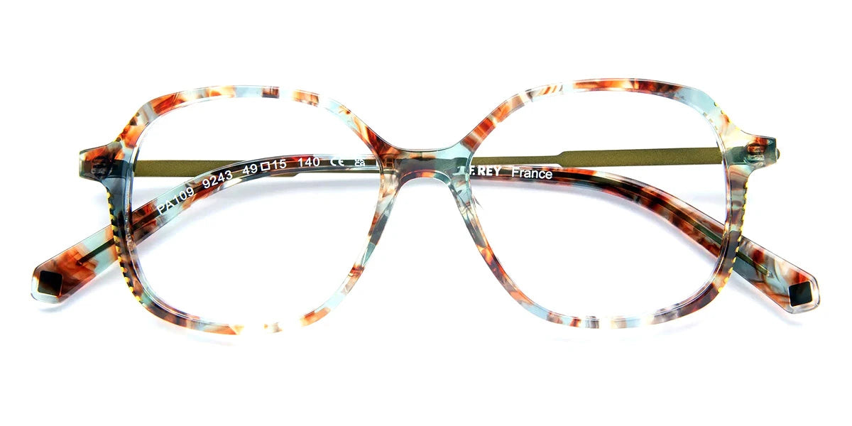 Demi Green/Khaki (9243) Eyeglasses (PA109 9243 49) by J.F. Rey™. Size: 49-15-140, Shape: Square, Material: Acetate and Metal.