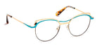 Black Satin/Turquoise/Shiny Pink Gold (0025) Eyeglasses (PM081 0025 47) by J.F. Rey™. Size: 47-18-140, Shape: Cat-Eye, Material: Metal.