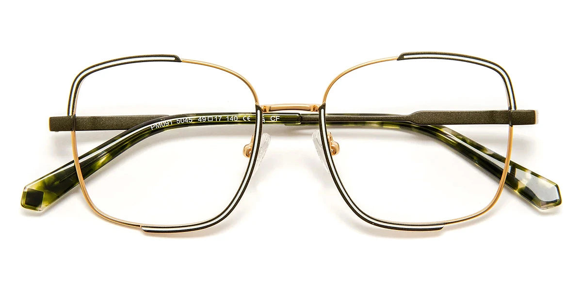 Satin Gold/Khaki/White (5045) Eyeglasses (PM091 5045 49) by J.F. Rey™. Size: 49-17-140, Shape: Square, Material: Metal.