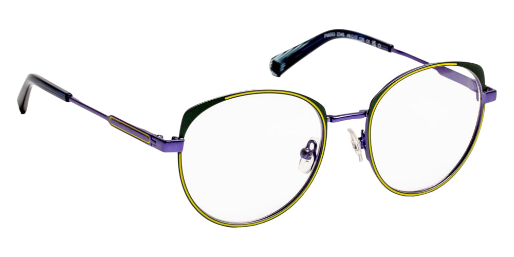 Blue/Khaki/Yellow (2346) Eyeglasses (PM093 2346 49) by J.F. Rey. Size: 49-17-135, Shape: Cat-Eye, Material: Metal.