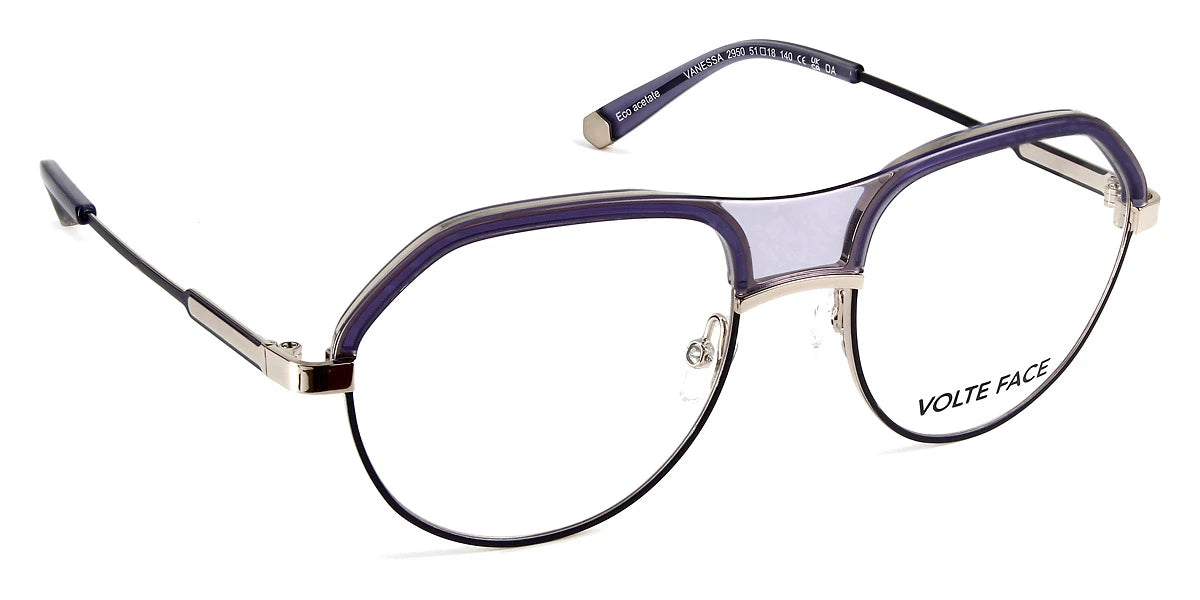 Blue/Gold (2950) Eyeglasses (Vanessa 2950 51) by J.F. Rey™. Size: 51-18-140, Shape: Aviator, Material: Acetate and Metal.