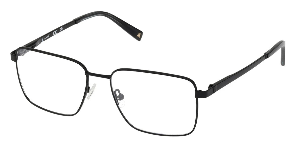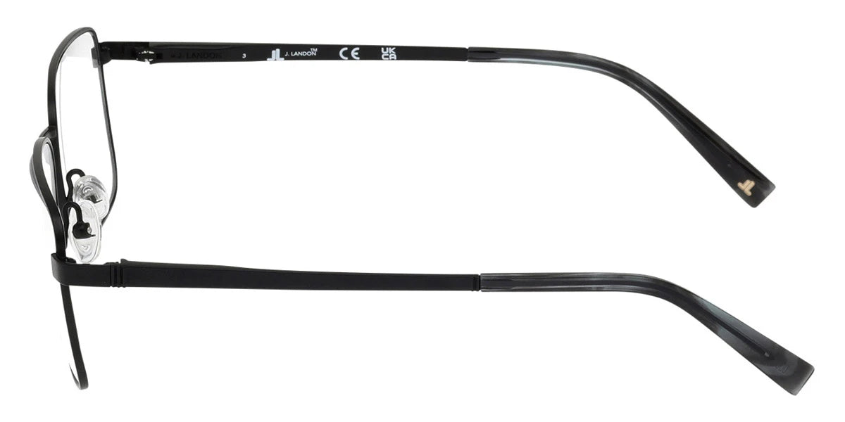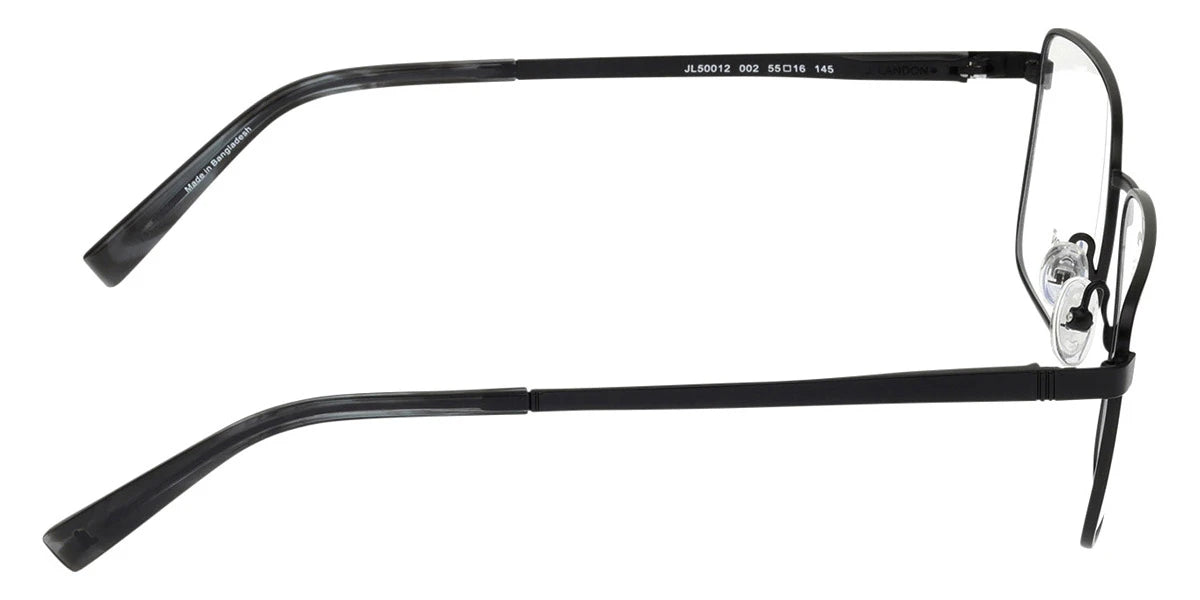 Matte Black (002) Eyeglasses (JL50012 002 55) by J. Landon™. Size: 55-16-145, Shape: Square, Material: Metal.